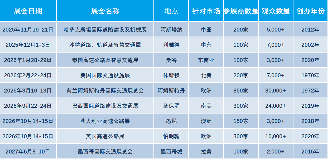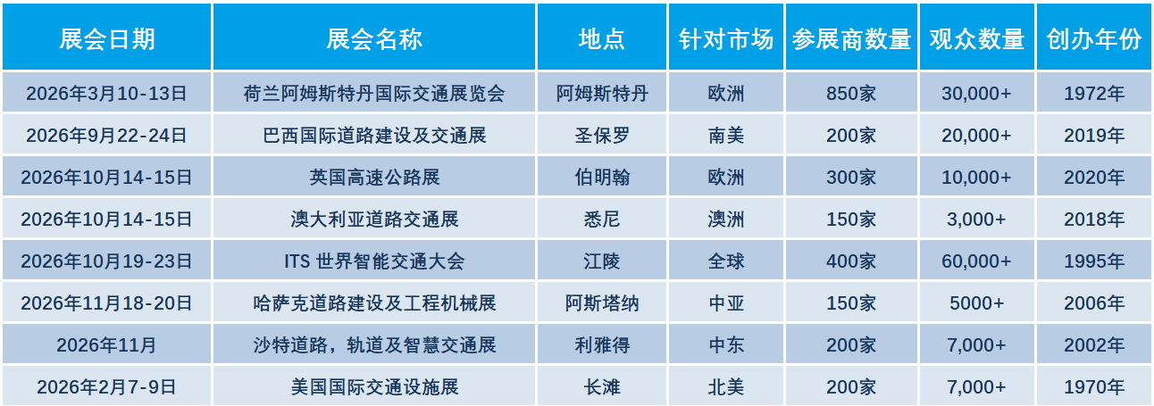 2026-2027年国际道路交通及基础设施展清单